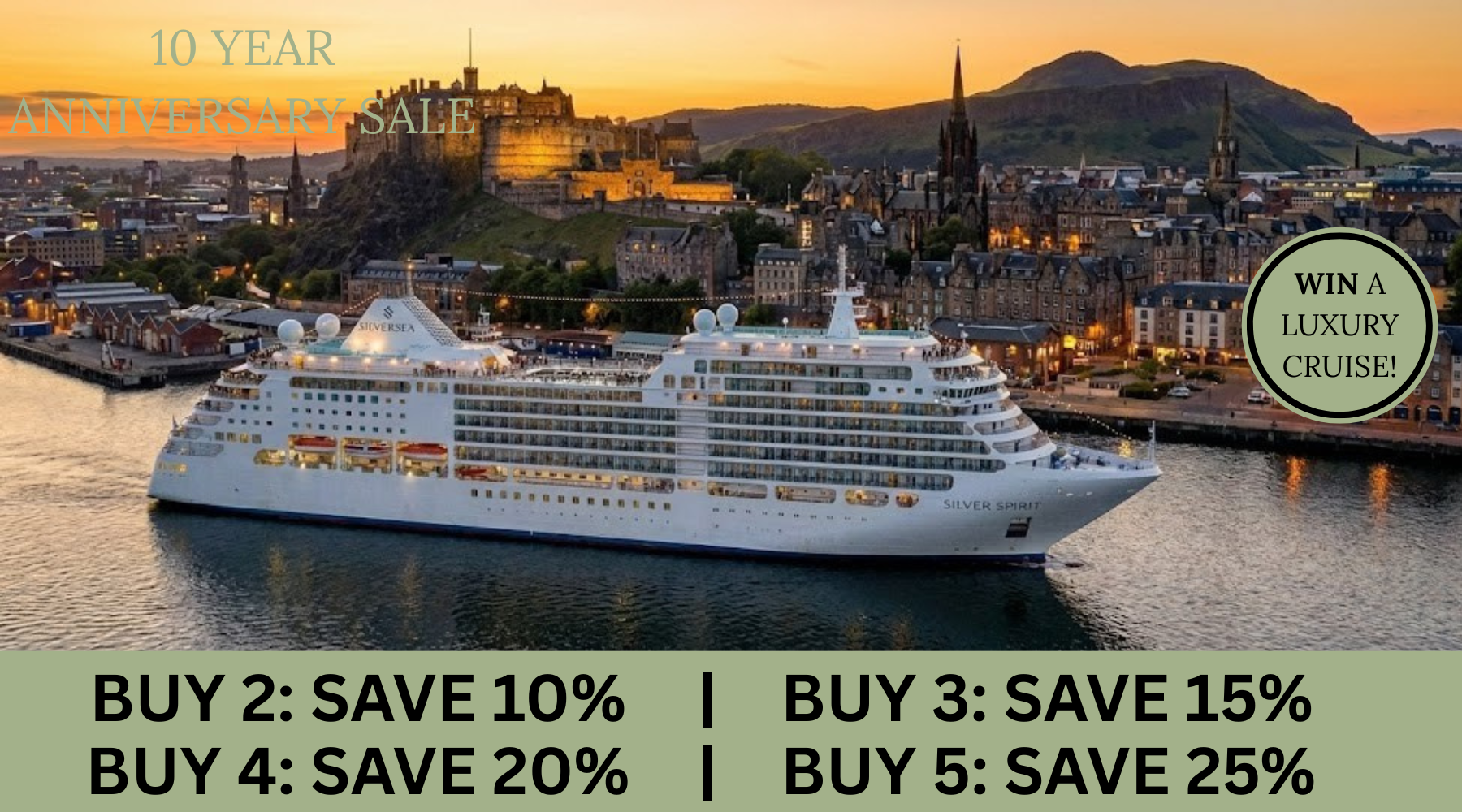 Today, we celebrate our 10th anniversary, and this is my way of saying thank you. As a token of our appreciation, every order gives you a chance to win a cruise along the Irish coast worth €30.000, sailing from Dublin to Edinburgh!